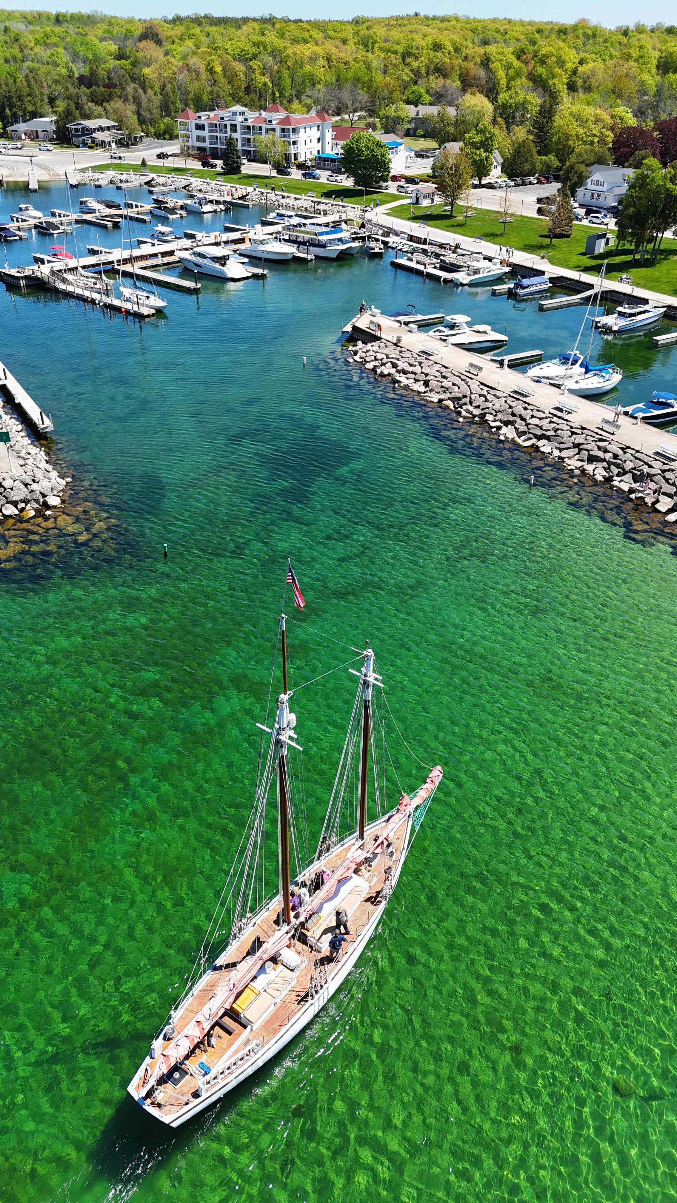 Experience the stunning beauty of Door County, Wisconsin, where sparkling waters, picturesque shorelines, and our expert captains and crew make every sail an unforgettable wonder.
